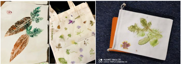 我们将植物的颜色用拓印的方式,保留在束口袋上面,让学生根据自己的想法创作一份属于自己的夏日美学作品。人的性格不一样,做出的作品也各有姿态,作品展的最大目的就是看见不同的思维。