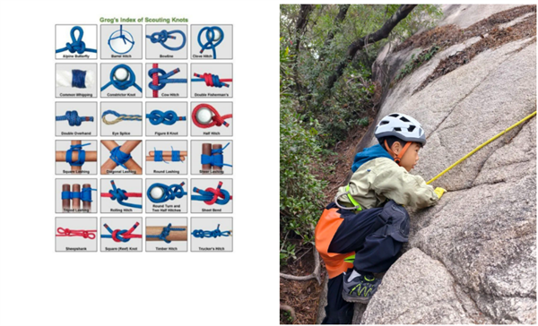 途中,他们将面临各种通关障碍,通过学习攀岩技巧和安全知识来「闯关」,导师们还将教授几种实用的户外绳结,如八字结和布林结。
