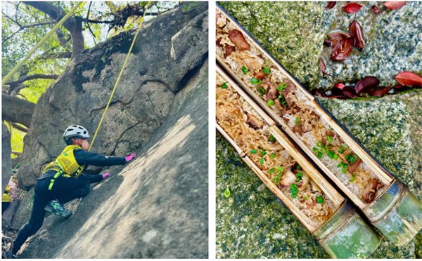 13:30 升级攀岩赛,走天然岩石路线,分组+岩石树藤地形+趣味挑战