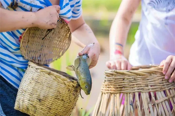借助当地的抓鱼神器,来一场抓鱼比赛。