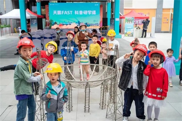 在老师的指导下,小工程师对零件进行重组:锅底、面板、控制索、馈源塔、馈源仓……天眼的轮廓就慢慢显现出来了。