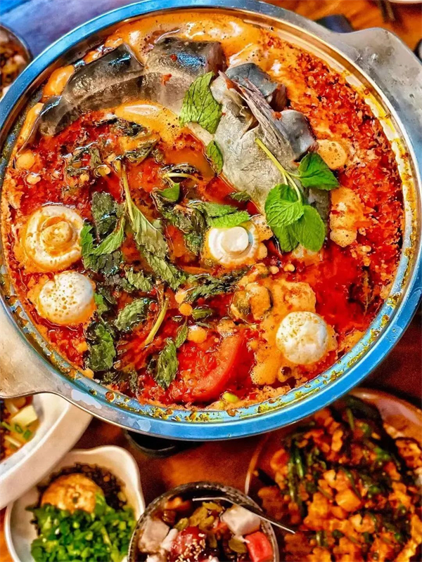 黔东南最有名的一道美食,酸汤以米汤自然发酵为汤底,配上特色的木姜子和番茄酱,糟辣椒等多种作料熬制而成,具有健脾开胃、生津止渴的功效。