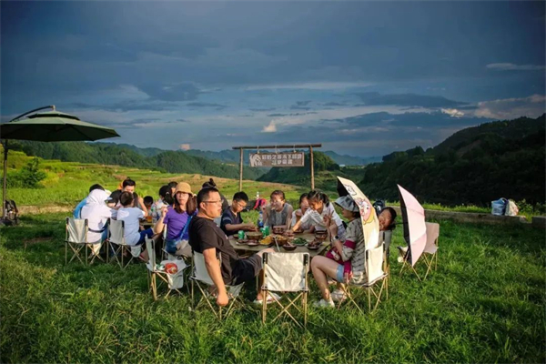 这片绿意盎然的梯田之上,一张长桌横亘其中,宛如一条纽带,将人们与大地紧密相连。桌上摆满了各式各样的美食,每一道菜都蕴含着梯田的精华。(如下雨改室内正餐)