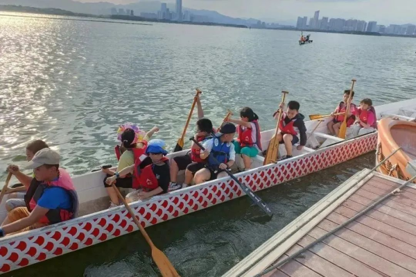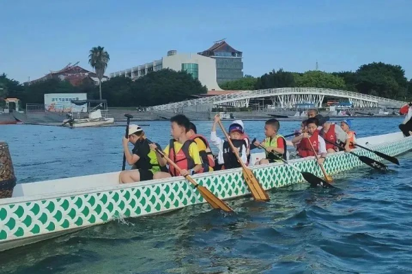甲辰龙年春节之际,三个正体字“龍”组成的“龘”(dá)字,在龙年前夕曾一度冲上春节祝福语榜一单。本环节研学导师将带领孩子们从“龙“字起源开始导入,进而延伸深入讲解中华龙舟文化、龙舟文化在厦门的传承——其作为一项古老而又充满活力的传统体育项目,承载着民族团结和奋斗精神,旨在引导学生在本次实地体验龙舟竞渡前对龙舟的历史文化和赛事有更全面的了解。