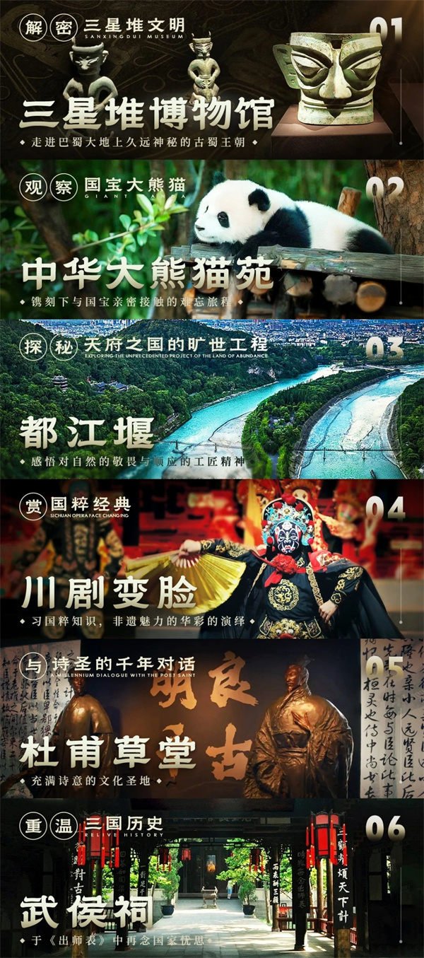 1、走进世界未解之谜文物群体部落,进行古蜀寻宝,深度解读文物,了解感受魅力古蜀文化;