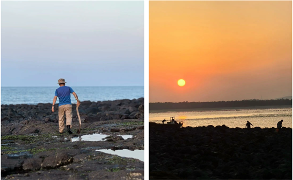 更神奇的是,潮汐退去后,火山岩间的沙滩滩涂化身为“星际寻宝场”——海蛎、螃蟹、寄居蟹在礁石间穿梭,仿佛火星生命在向地球访客招手。