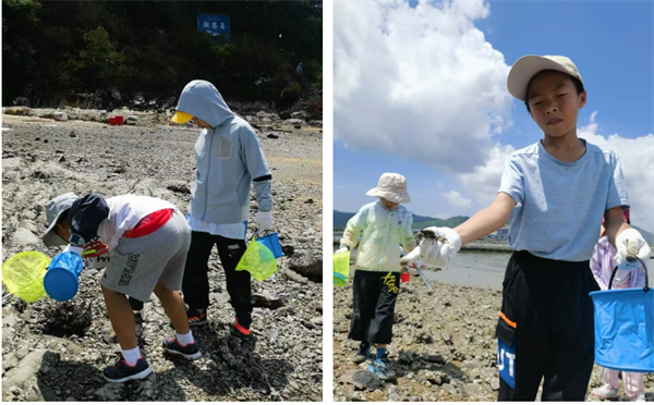 岩缝中的螃蟹举钳示威,礁石上的海蛎如微型城堡,孩子们戴上手套、拎起小桶,在专业指导下学习辨别潮间带生物。