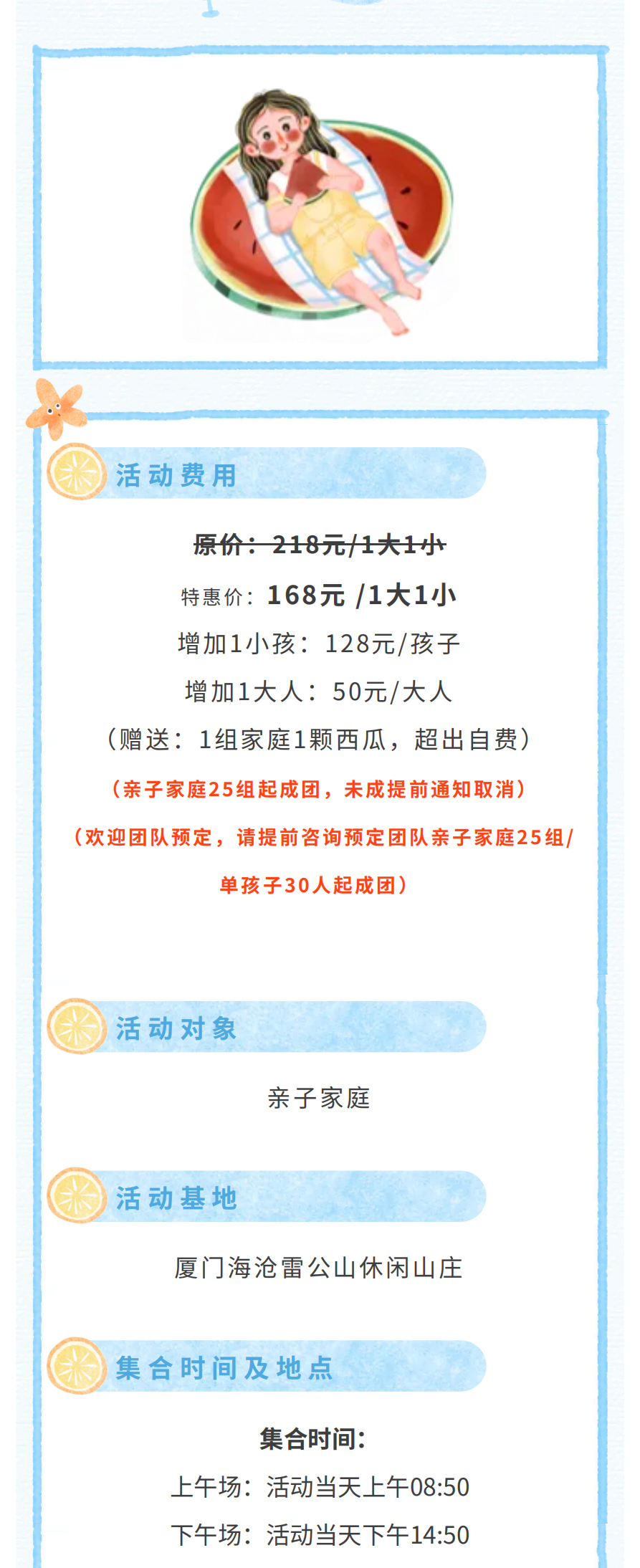 原价:218元,特惠价:168元 /1大1小