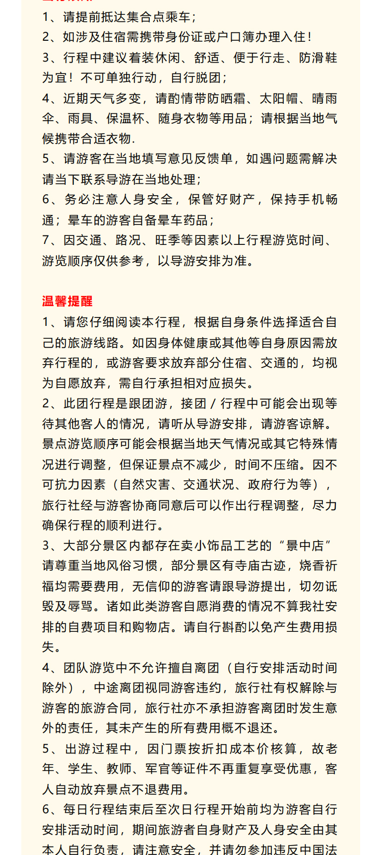 1、用车:空调旅游车,根据人数安排车型(每人一正座);