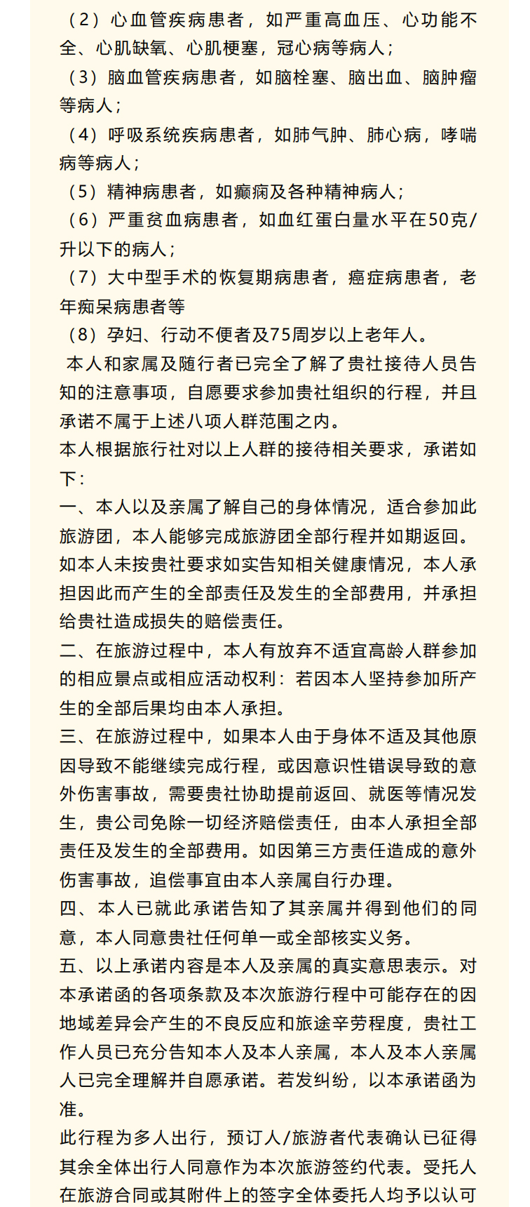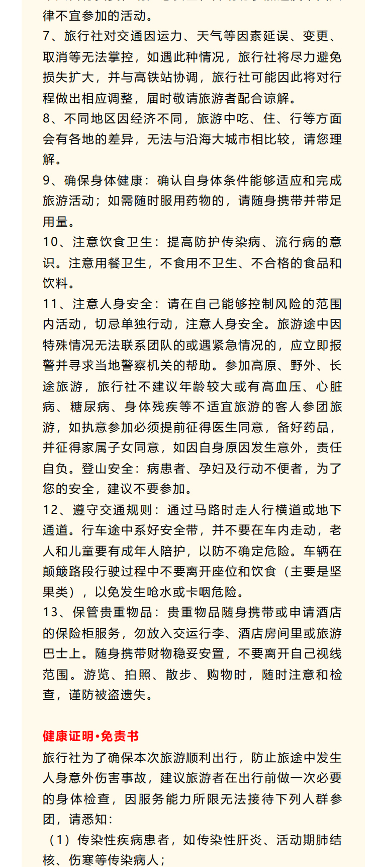 3、因不可抗力因素而需要更改行程时所产生的一切费用;