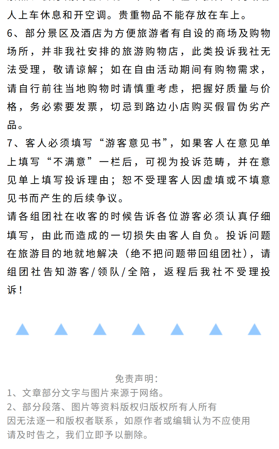 1、不含旅游意外险(建议客人购买),旅行袋、帽;
