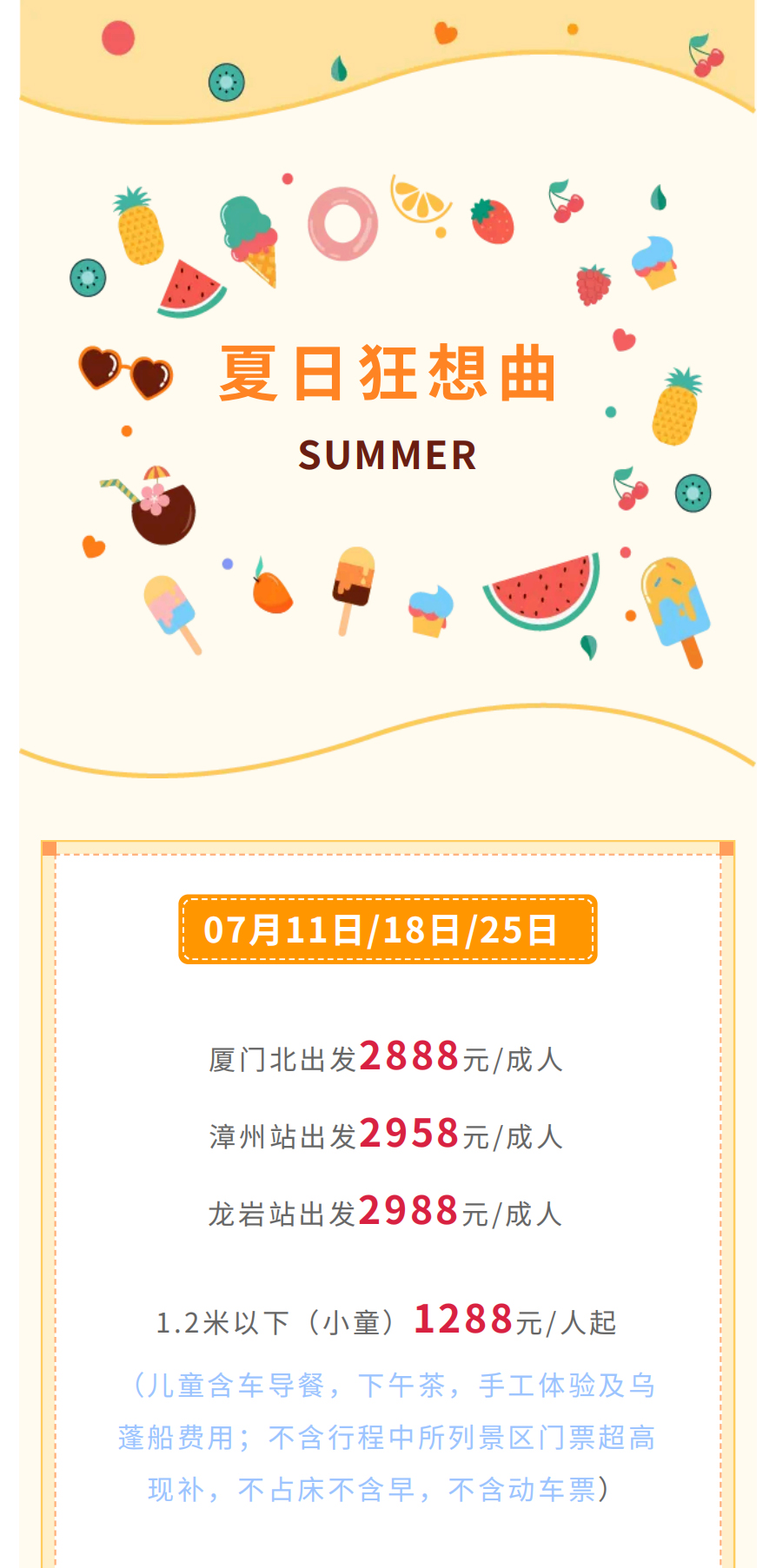 7月11日、7月18日、7月25日 首日出发,下单前请先咨询客服是否成团!