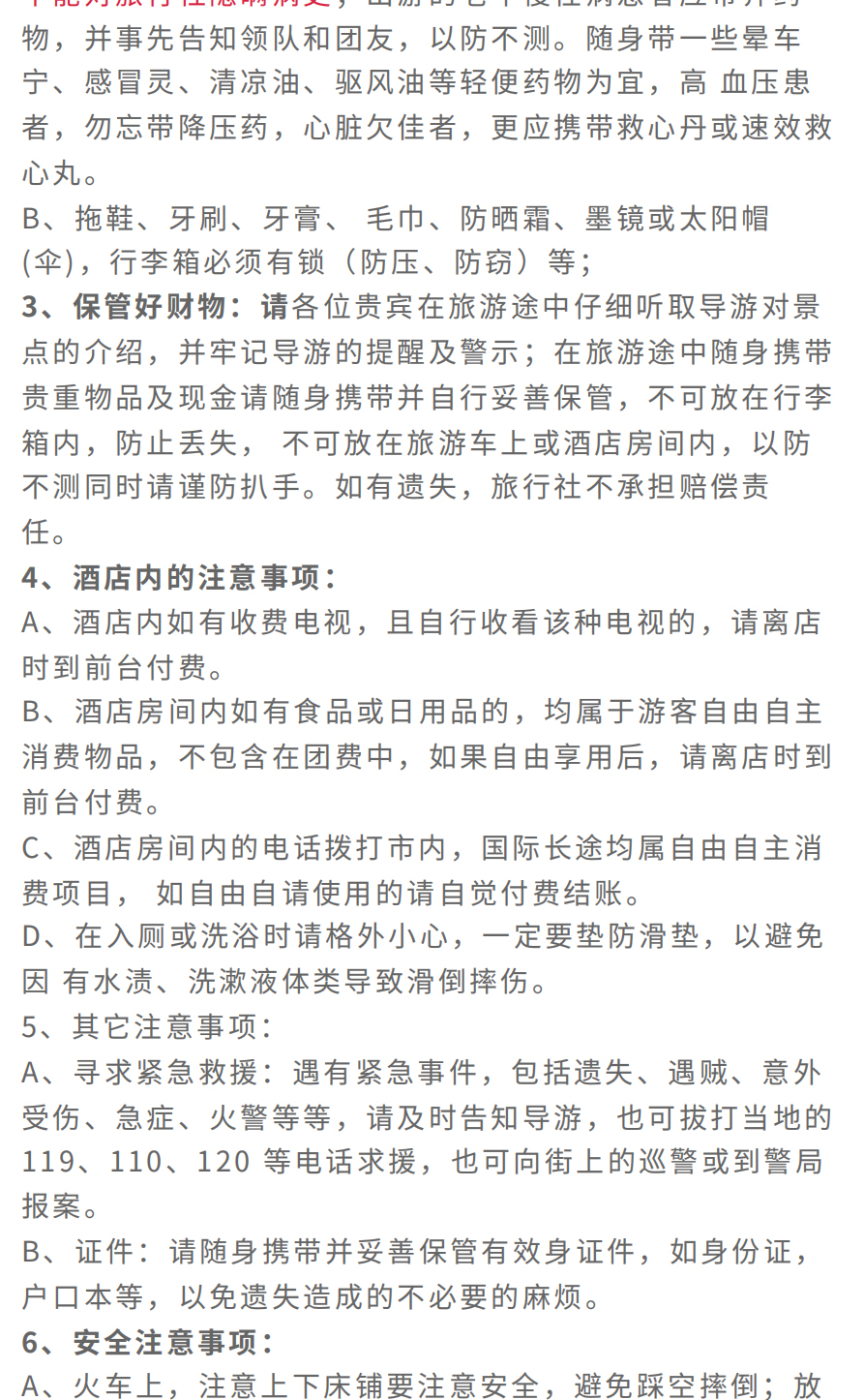 1、不含旅游意外险(建议客人购买),旅行袋、帽;