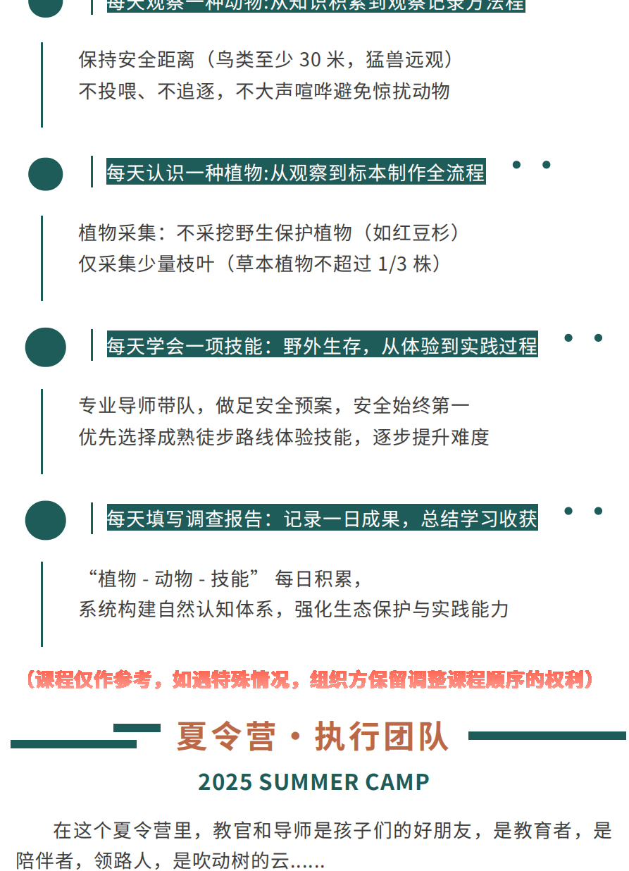 1.遇特殊情况如天气或场地等原因,根据实际情况有权对行程项目内容进行调整,若有减少项目不予退费。如遇天气等不可抗力因素,有权延期或取消活动,以实际通知为准。