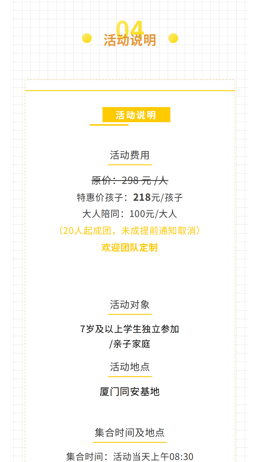 说明:家长仅陪同,不参与活动,仅含车、团餐、场地服务、保险。