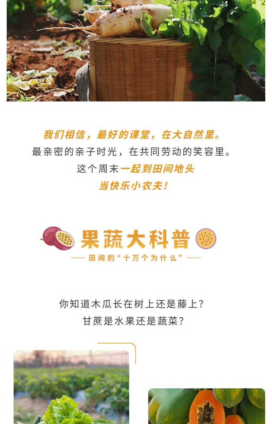 【小农夫亲子采摘记】限时惊爆价69.9元起!! 摘果蔬、抓鸡、摘百香果、做萝卜罐头嗨玩整个半天!