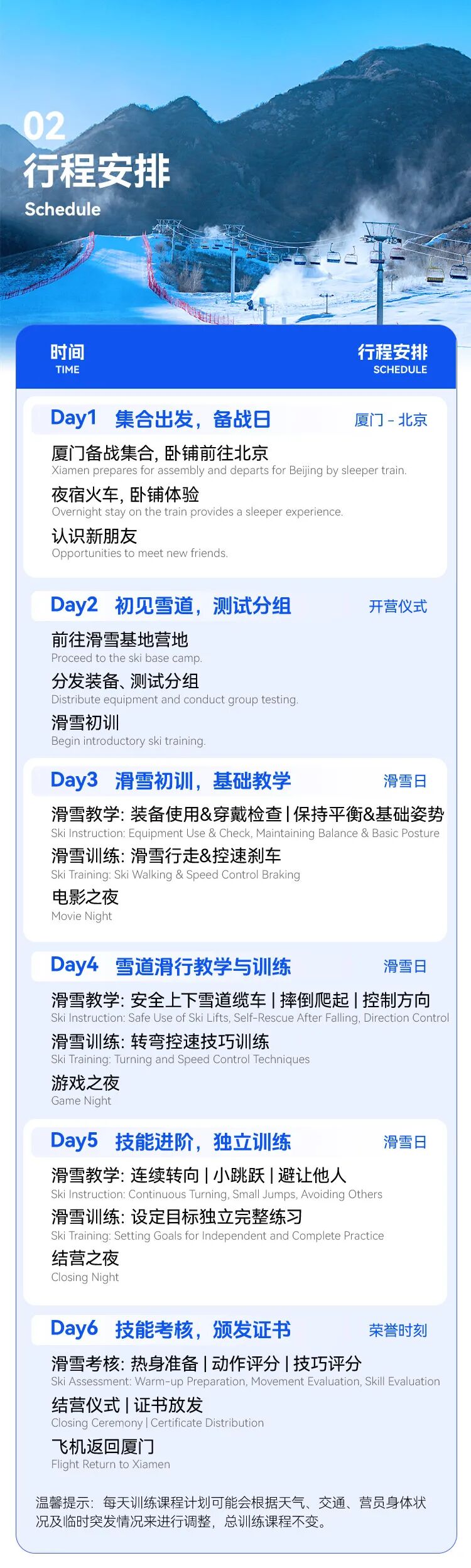 注:因疫情等其他不可抗因素或身体原因不能出发,可改期或退实际支出外的全部费用。