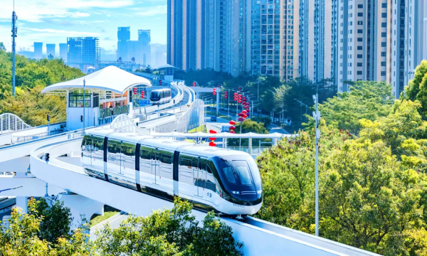 3. 乘坐云巴游览坪山,感受现代高科技无人化智能运维,了解列车如何转弯掉头。