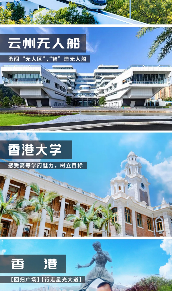 5.师资:全程安排一名主控老师+一名带队老师+一名助教;香港一天1名导游;澳门一天1名导游;港大/澳大各一名学长。