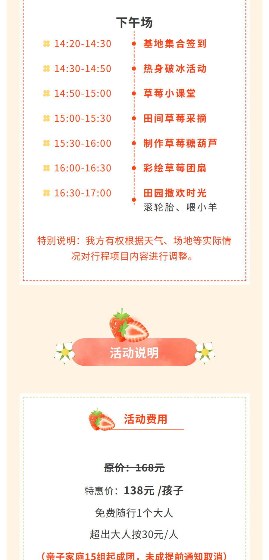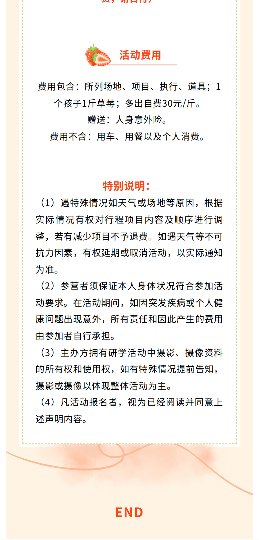 5.赠送:每个孩子1斤草莓,超出需付费,30元/斤