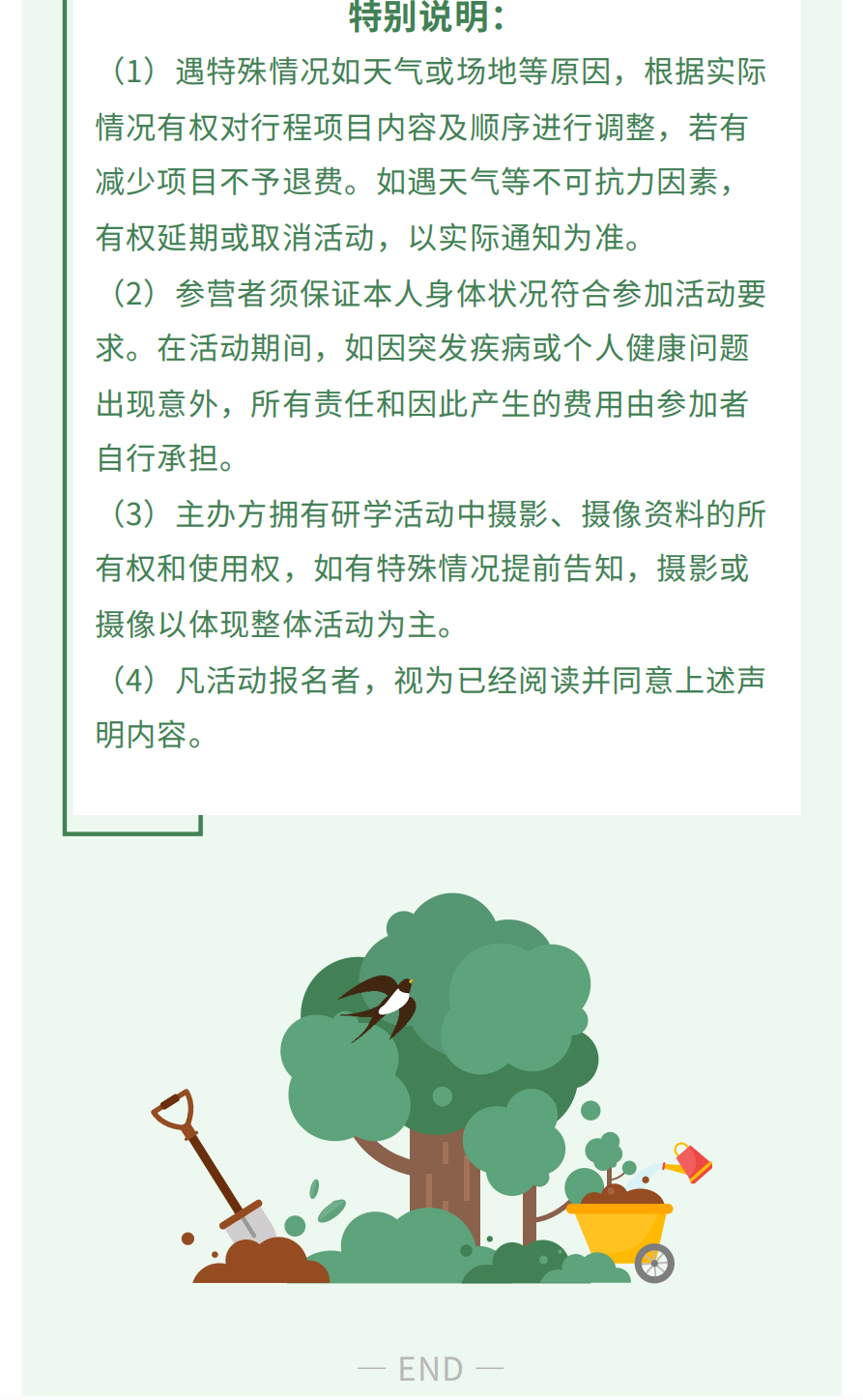 3.主办方拥有研学活动中摄影、摄像资料的所有权和使用权,如有特殊情况提前告知,摄影或摄像以体现整体活动为主。