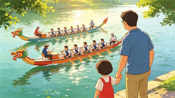 相传,战国时期爱国诗人屈原投江后,百姓们划船奋力相救,从此,划龙舟成为纪念屈原、祈福安康的重要习俗。