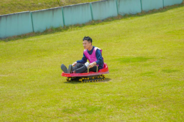 滑车滑草:体验滑草场滑车,舒坦地坐在车里,自陡坡上向下疾驶,惊险刺激,体验风驰电掣的感觉。