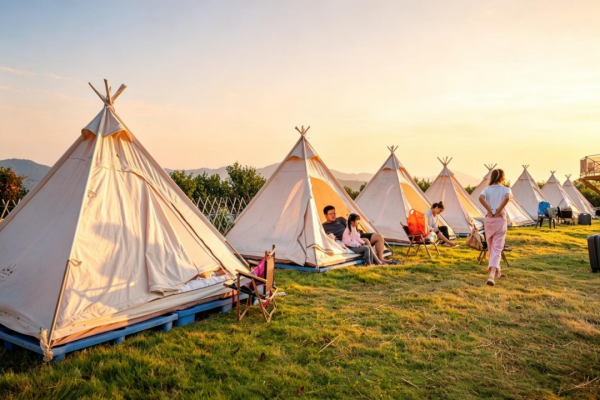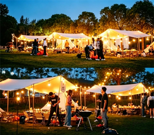 迎着微风的浪漫和慵懒,天幕下的桌子、椅子一应俱全,可以搭配上一些水果, 一场大自然里朋友的野餐会,一起看云卷云舒,伴着落日的余晖肆意畅聊。