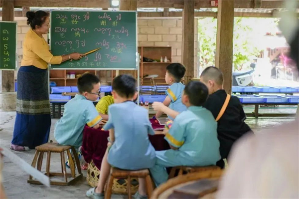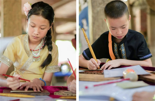 【曼掌村刻贝叶经】贝叶经就是写在贝树叶子上的经文,素有“佛教熊猫”之称的贝叶经源于古印度。在贝叶经非遗传承人的讲解组织下了解贝叶经的由来,通过实地考察了解傣泐文这种独特文字。
