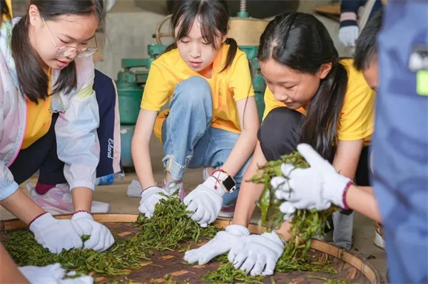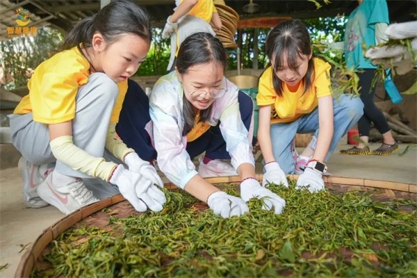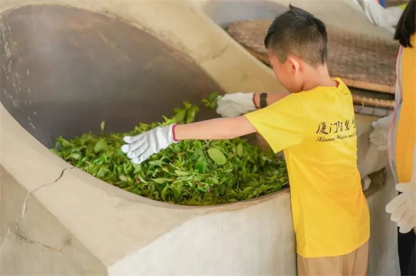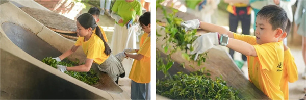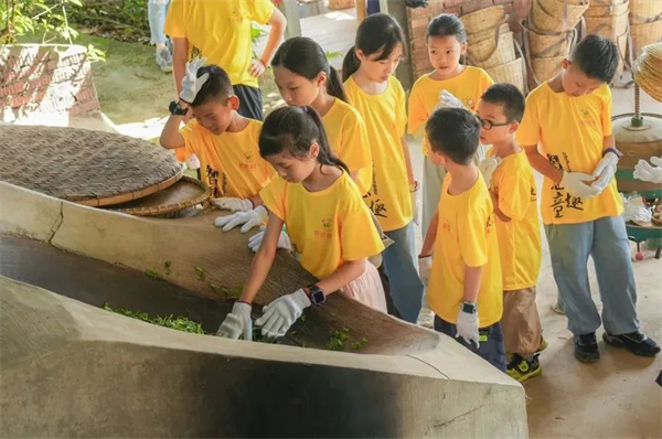 【制茶体验】在老师的带领下,在制茶坊了解制茶流程,根据不同的季节:杀青、揉茶、压茶、包装。