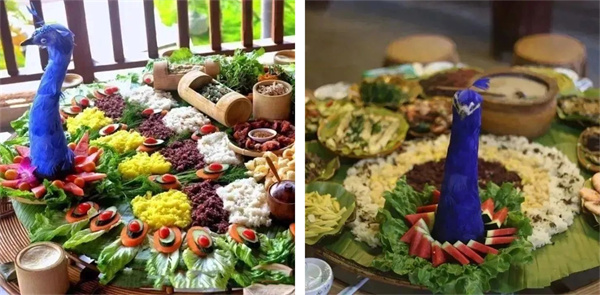 版纳的美食,是流连于舌尖味蕾的酸辣香甜;是耳边完全不懂的傣语,仿佛带着异国风情;雨林宴、僾伲风味餐、孔雀宴、手抓饭、象餐饕餮盛宴轮番上演,民族风情尽显其中。