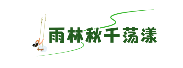 【雨林秋千】坐上雨林秋千,轻轻一荡,仿佛瞬间化身为雨林的精灵,穿梭于茂密的枝叶之间。