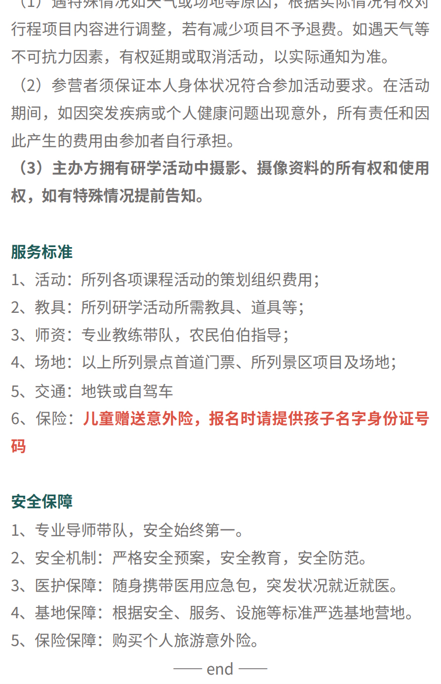 注意:家长的费用不含扁食及其他活动项目