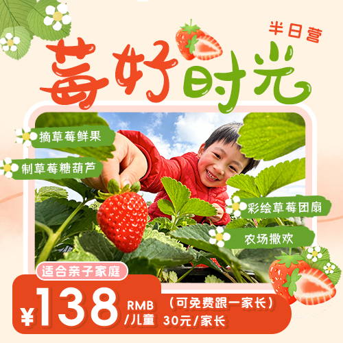 【半日营】莓好时光 | 赴一场草莓之约,收藏一段莓好时光!摘草莓鲜果+制草莓糖葫芦+彩绘草莓团扇+农场撒欢......