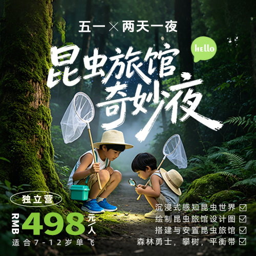Vip优惠 【五一2天1夜】 昆虫旅馆奇妙夜和昆虫一起旅行 | 搭建昆虫旅馆,给昆虫一个家 | 星空露营,森林冒险家,乡村趣撒野